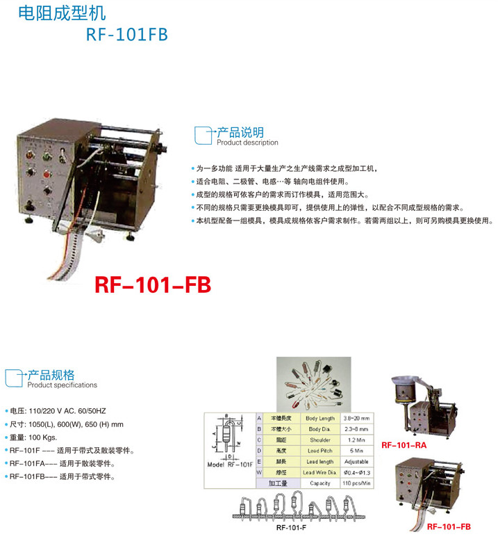 產(chǎn)品名稱:電阻成型機(jī)RF-101FB